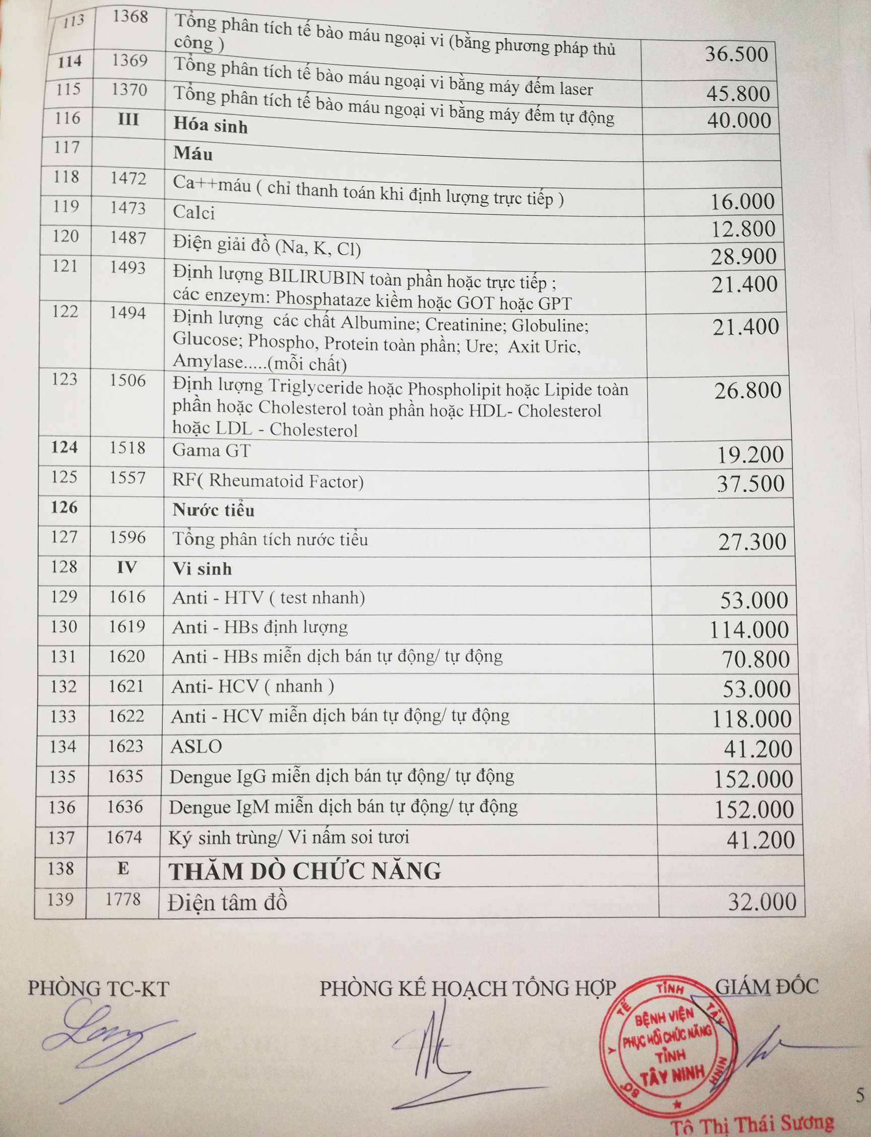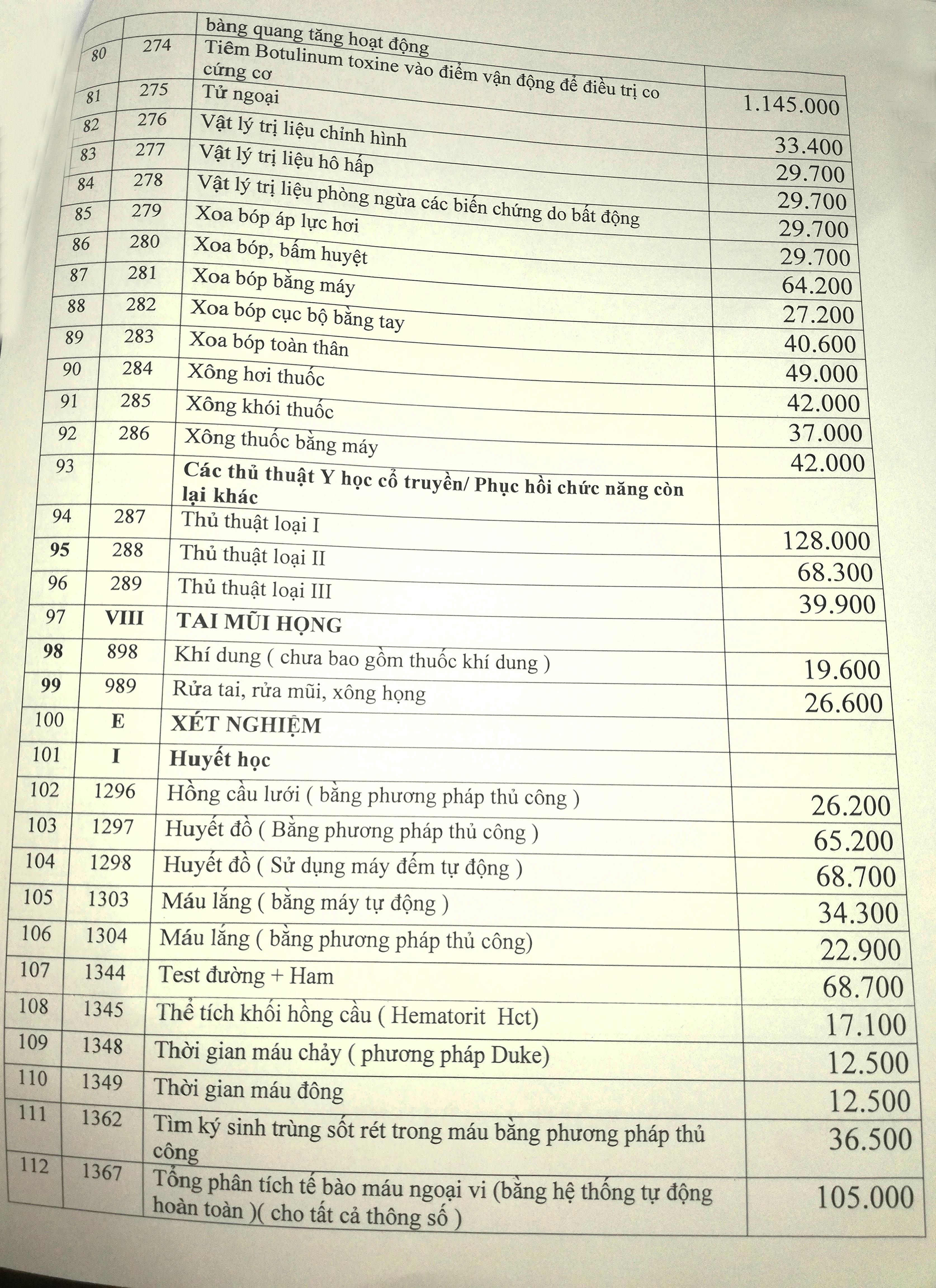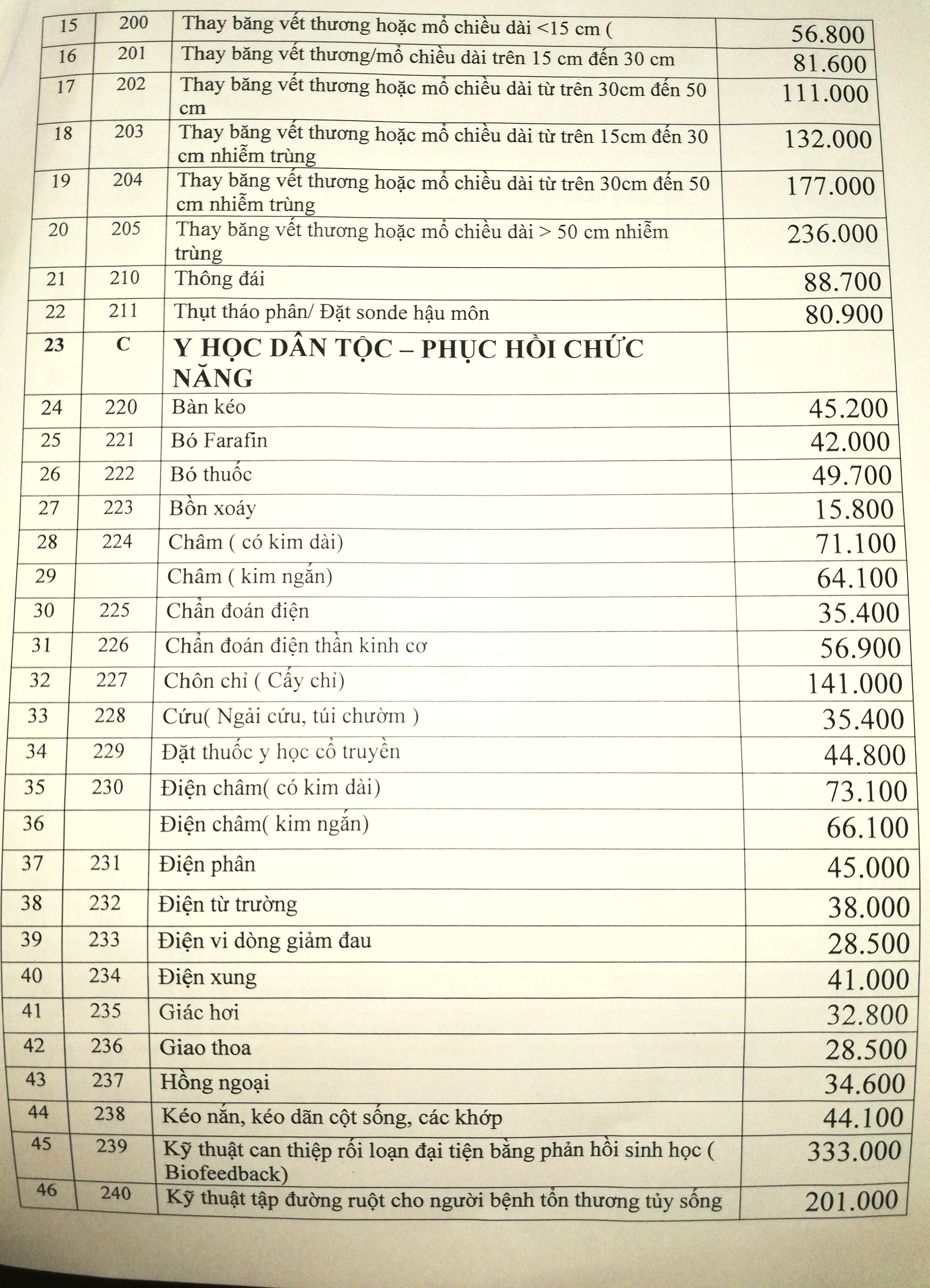 KHUNG GIÁ DANH MỤC MỘT SỐ DỊCH VỤ KHÁM, CHỮA BỆNH BVPHCN DÙNG CHO NGƯỜI CÓ THẺ BHYT ÁP DỤNG TỪ NGÀY 15/12/2018