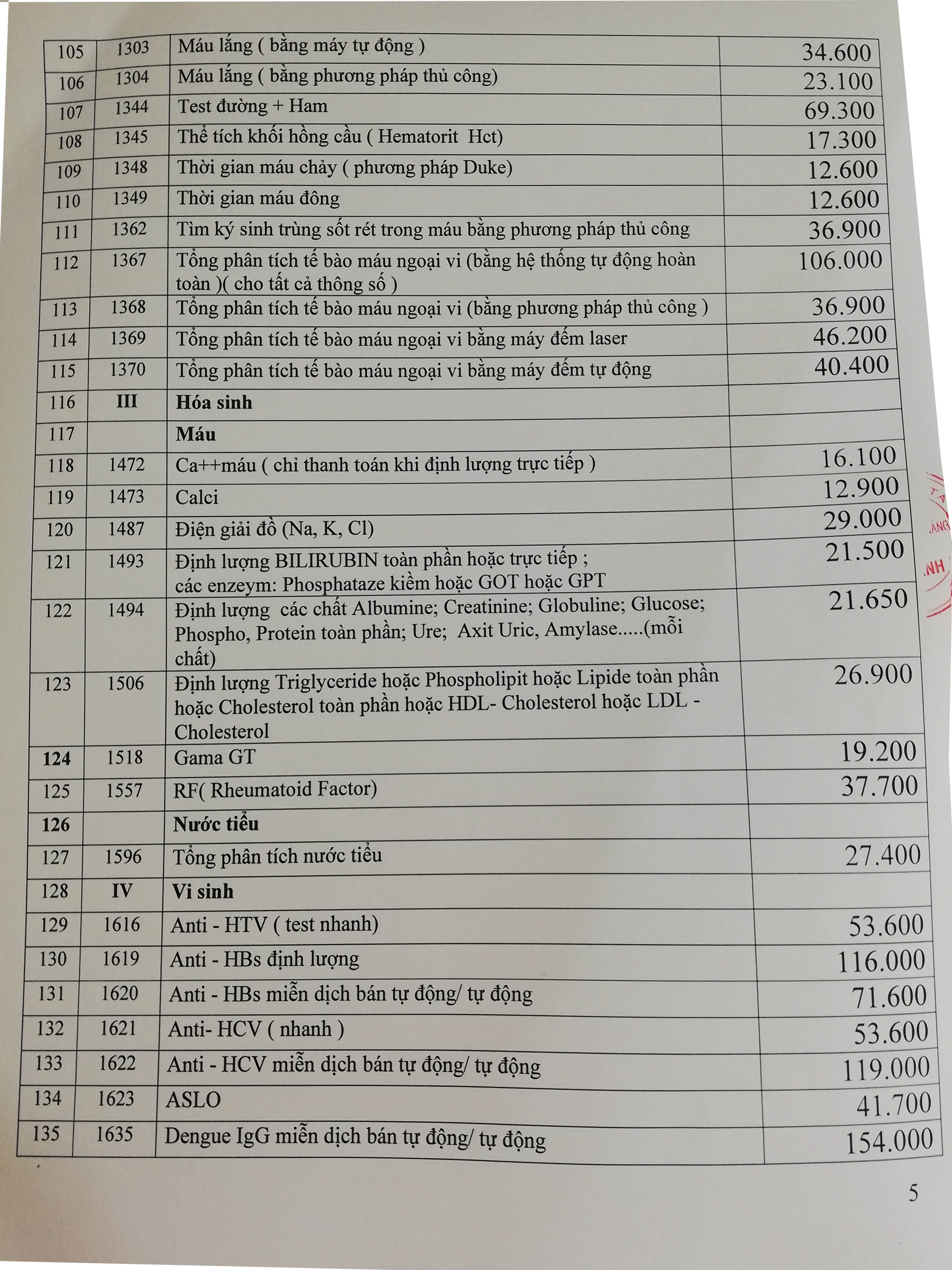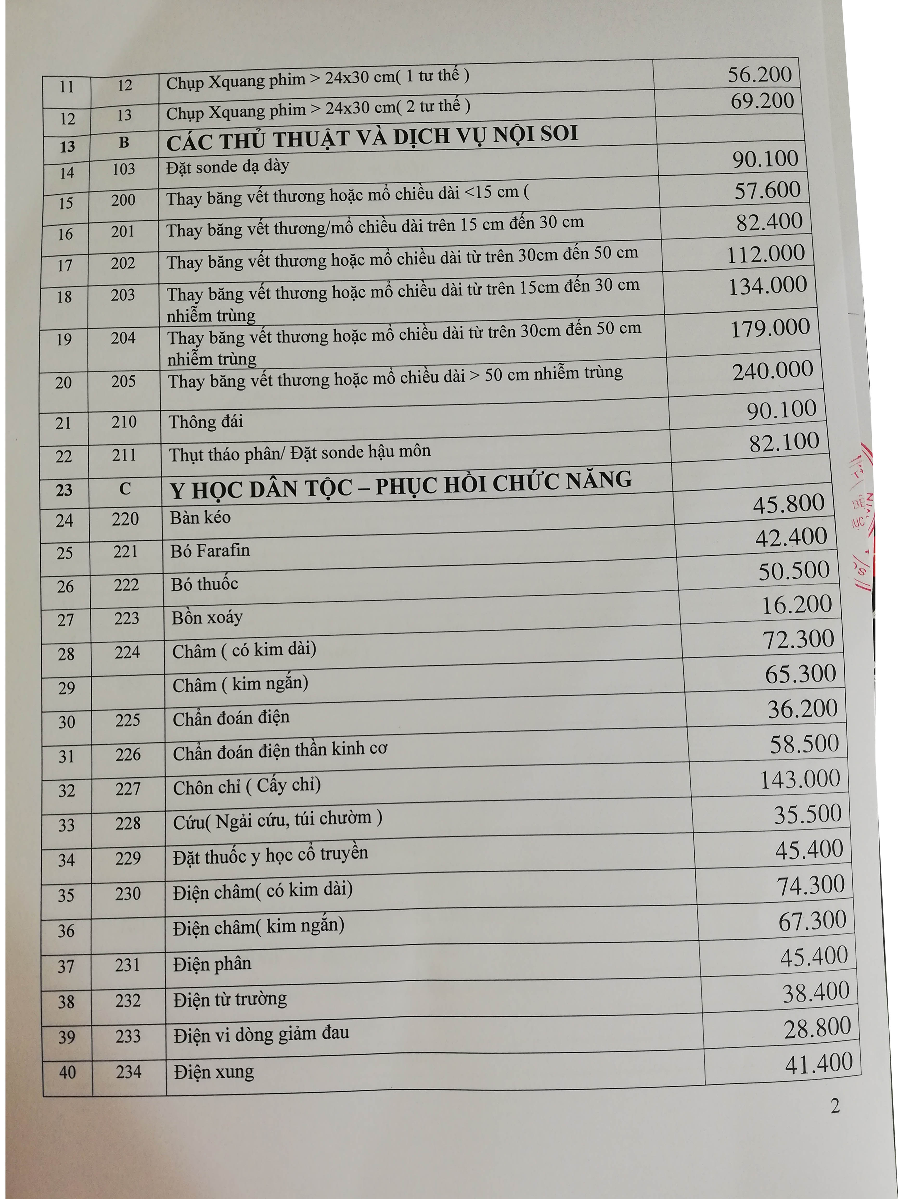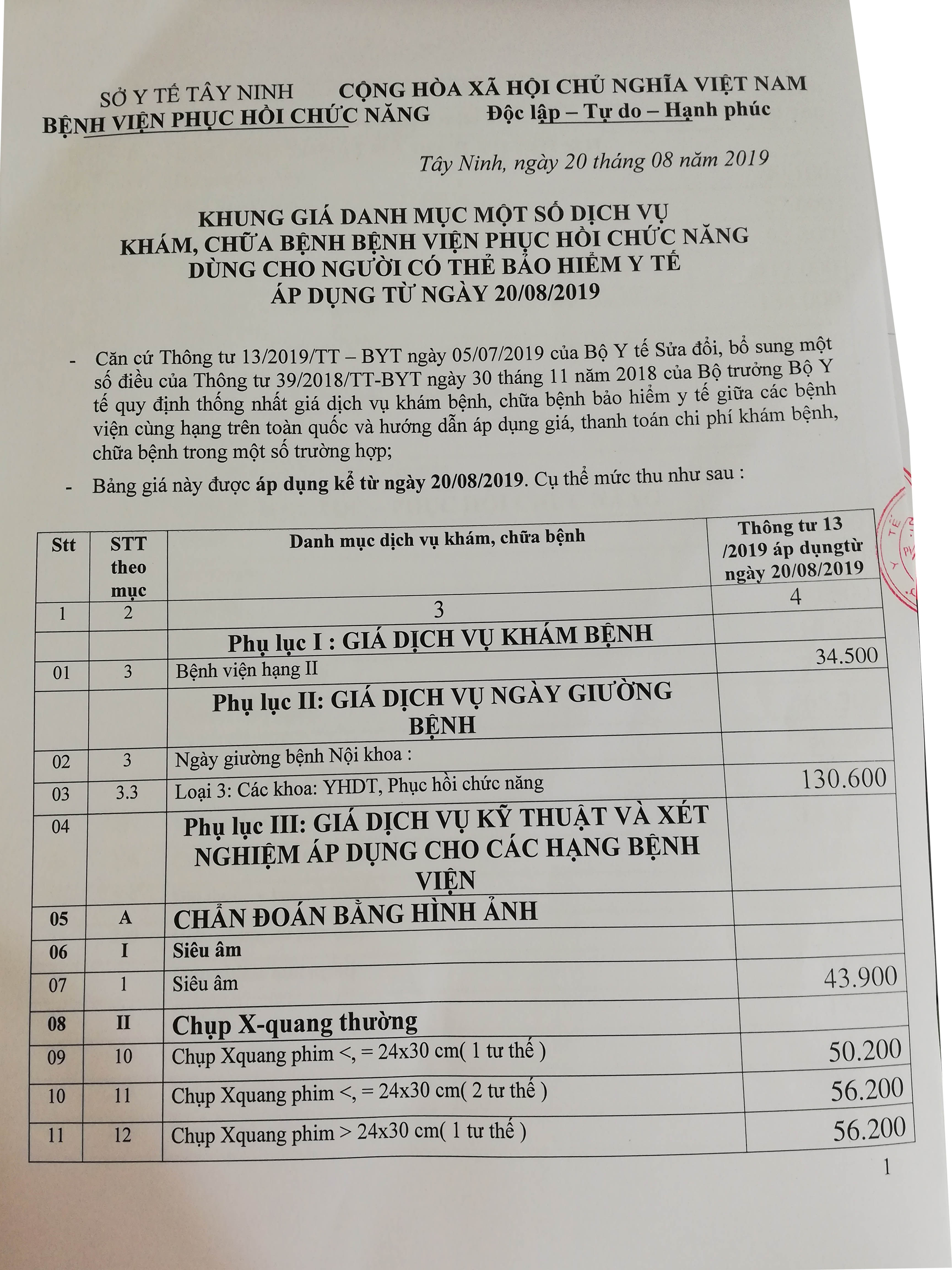 KHUNG GIÁ DANH MỤC MỘT SỐ DỊCH VỤ KHÁM, CHỮA BỆNH BVPHCN DÙNG CHO NGƯỜI CÓ THẺ BHYT ÁP DỤNG TỪ NGÀY 20/8/2019